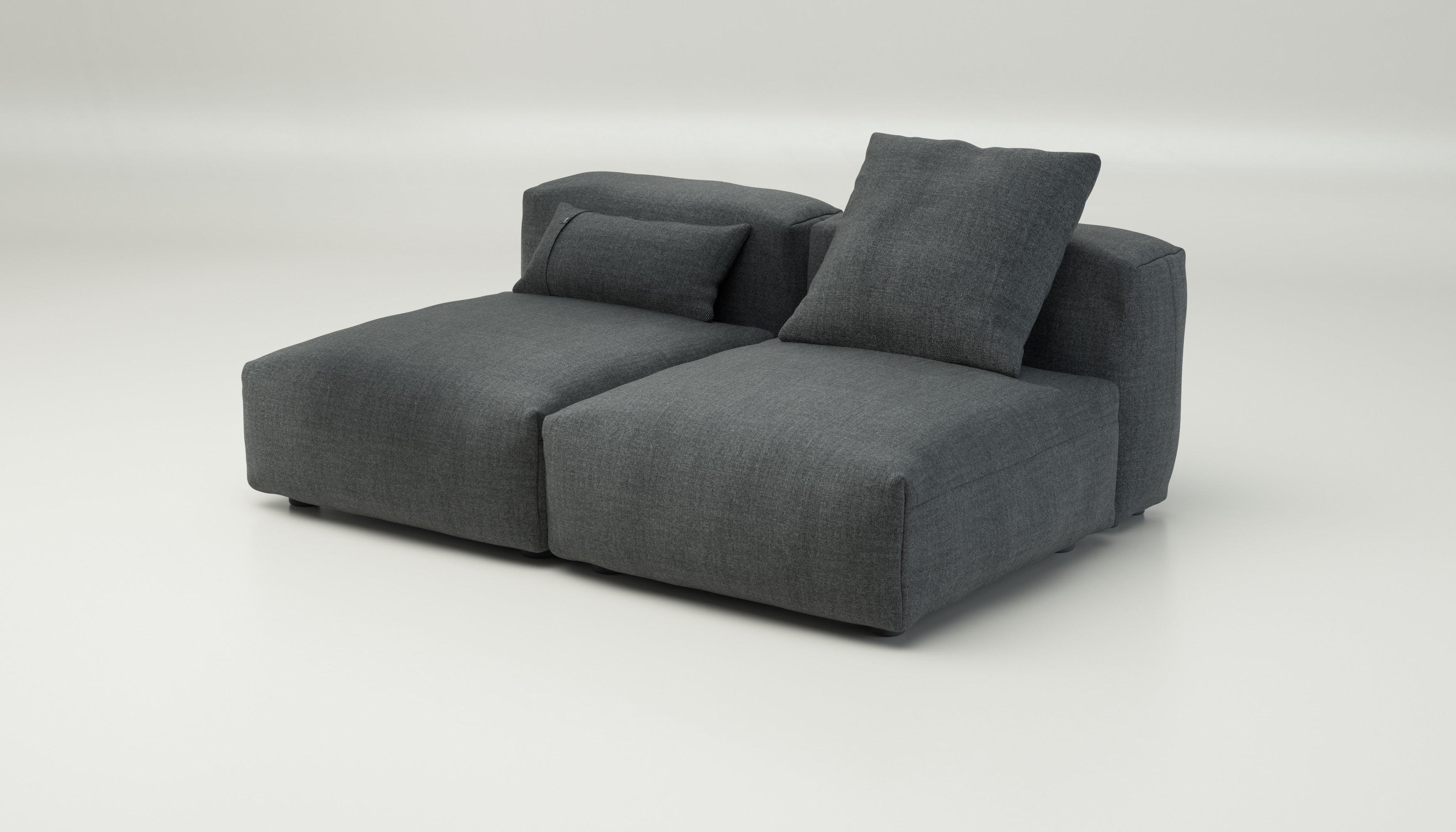 The set consists of four modules – two seat modules and two side modules – that can be easily rearranged any time. Keep them together as a shared setup for comfort and connection or separate them to create individual spaces.